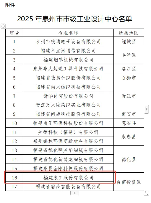 Baru-baru ini, Biro Industri dan Teknologi Informasi Kota Quanzhou secara resmi merilis "Pemberitahuan Penerbitan Daftar Pusat Desain Industri tingkat Kota Quanzhou pada tahun 2025", dengan total 17 perusahaan terdaftar di kota tersebut. Diantaranya, Fujian Quangong Co., Ltd., yang sangat terlibat dalam bidang mesin batu bata cerdas dan peralatan pemanfaatan limbah padat yang komprehensif, berhasil dipilih karena kinerjanya yang luar biasa dalam inovasi desain industri, konstruksi sistem penelitian dan pengembangan, dan transformasi pencapaian.