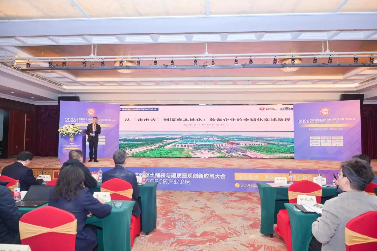 Dari tanggal 13 hingga 15 Maret, Konferensi 2026 tentang Penerapan Inovatif Paving Beton dan Hardscape Ekologis, bersamaan dengan Forum Industri Batu Bata PC Batu Imitasi ke-4, diadakan di Jinjiang, Fujian. Konferensi yang bertemakan "Hijau & Rendah Karbon: Bentang Alam yang Berinovasi, Secara Cerdas Memetakan Arah Baru" ini mempertemukan para ahli, cendekiawan, dan perwakilan perusahaan dari berbagai bidang termasuk Penelitian dan Pengembangan, manufaktur, desain, konstruksi, pengujian, dan manufaktur peralatan. Bersama-sama, mereka mengeksplorasi jalur pengembangan inovatif untuk industri pengerasan jalan beton dan hardscape yang ekologis. FujianQuangong Machinery Co., Ltd.diundang untuk menghadiri acara tersebut, di mana mereka mendirikan stan pameran untuk memamerkan pencapaian teknologi perusahaan dan solusi sistem komprehensif dalam bidang peralatan manufaktur produk beton.