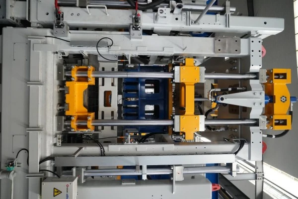 3Sistem Perubahan Cetakan Cepat Otomatis Sistem penggantian cetakan cepat otomatis Zenith didasarkan pada pengoperasian beberapa perangkat yang terkoordinasi, memungkinkan penggantian cetakan yang cerdas, cepat, dan tepat. Setelah cetakan diangkut di sebelah mesin utama, cetakan tersebut ditempatkan pada unit penggantian cetakan dengan sistem pengangkatan. Sistem secara otomatis menyelesaikan proses penggantian cetakan tanpa penanganan, penentuan posisi, atau penguncian secara manual.